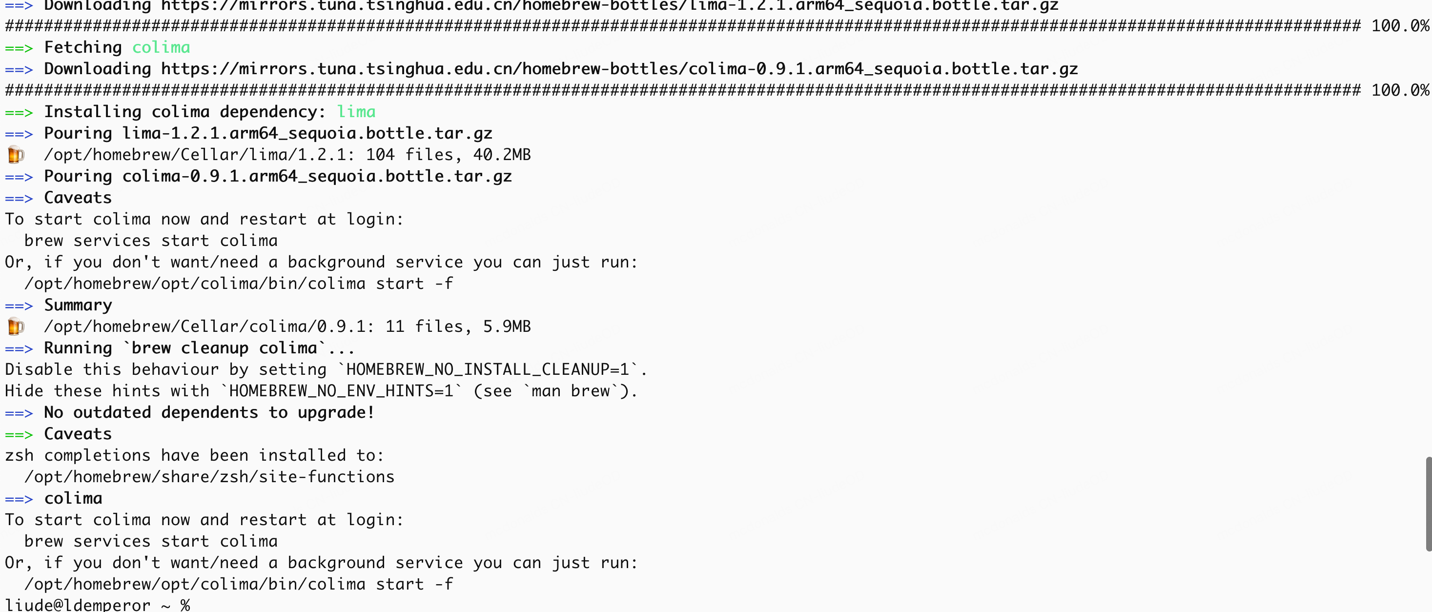 emporerlinux@ldemperor ~ % brew services status colima