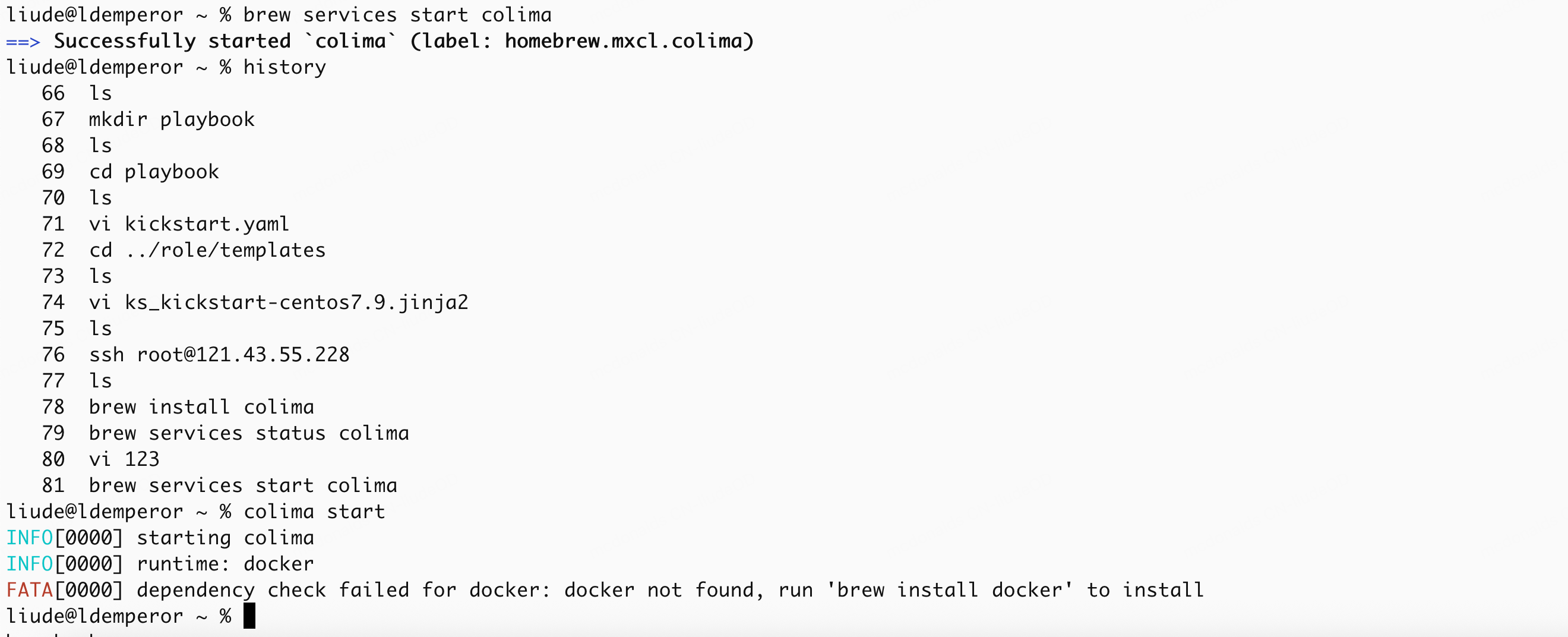 emporerlinux@ldemperor ~ % brew services status colima